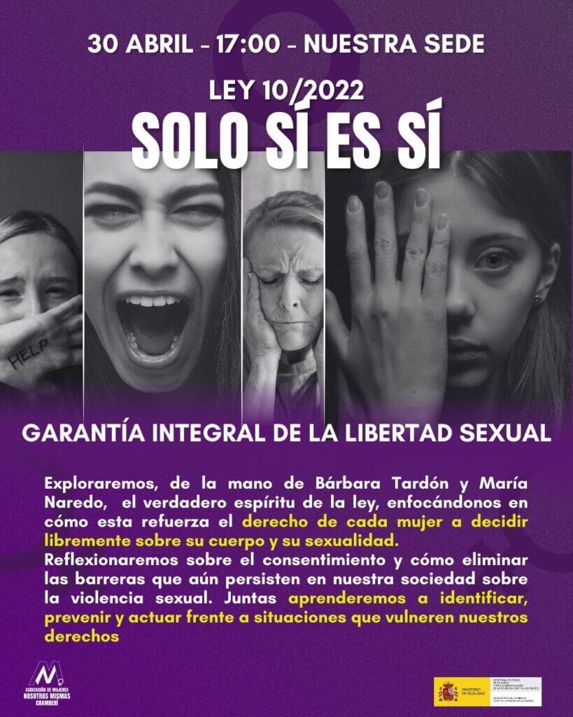 El próximo miércoles 30 de abril a las 17:00, en Nosotras Mismas Chamberí, tendremos el honor de recibir a Bárbara Tardón y María Naredo, dos figuras clave en la lucha contra la violencia sexual y en la elaboración de la Ley del Solo sí es sí.