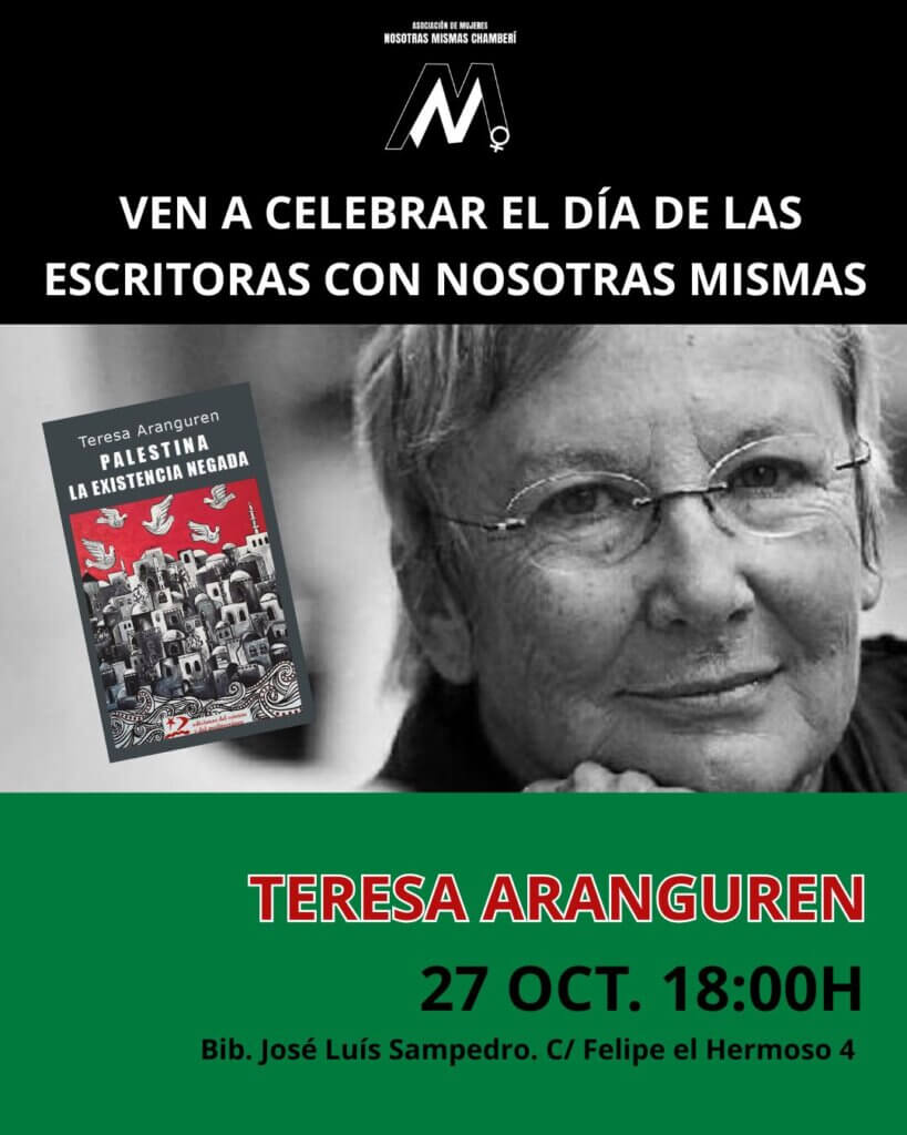 Día de las Escritoras con Nosotras Mismas. El lunes 27 de octubre a las 18:00 en la Biblioteca Pública José Luis Sampedro. Nos visita la periodista y escritora Teresa Aranguren, quien presentará su libro Palestina, la existencia negada.
