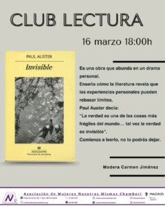 Esta vez, nuestra profe de literatura, Carmen Jiménez, nos ha propuesto la lectura de Invisible, de Paul Auster, una obra que nos permitirá adentrarnos en un drama personal intenso y reflexionar juntas sobre cómo la literatura puede traspasar los límites de la