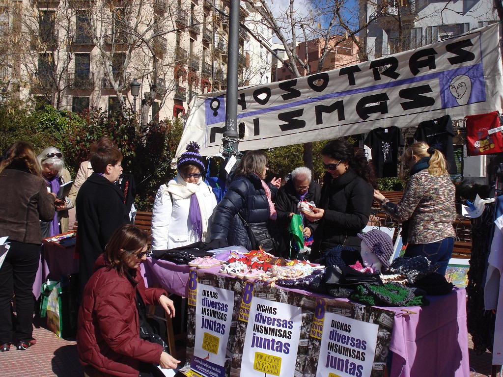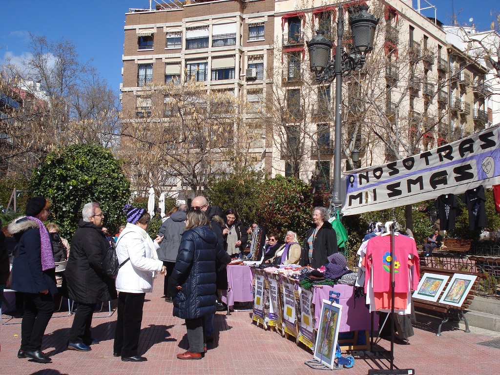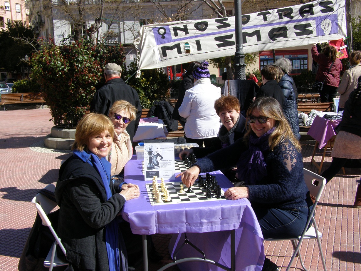 El domingo 6 de marzo y como en años anteriores nuestra Asociación ha querido celebrar el Día Internacional de las Mujeres, saliendo a la Plaza de Olavide por la mañana, para dar a conocer a los vecinos y vecinas de Chamberi las actividades que hacemos e informarles sobre nuestra Asociación y sobre la manifestación que tendría lugar el día 8. Como siempre fue una agradable mañana que compartimos con cantidad de amigos y amigas, disfrutamos de algunas canciones de nuestro coro, conocimos mas de cerca el taller de ajedrez, gracias a la participación de nuestras compañeras ajedrecistas y mostramos los trabajos realizados en algunos de los talleres que se realizan en la Asociación.